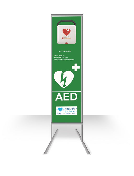 Perfect when walls can not be drilled ILCOR approved signage Holds all makes/ model of defibrillators (AED) 120 x 30cm